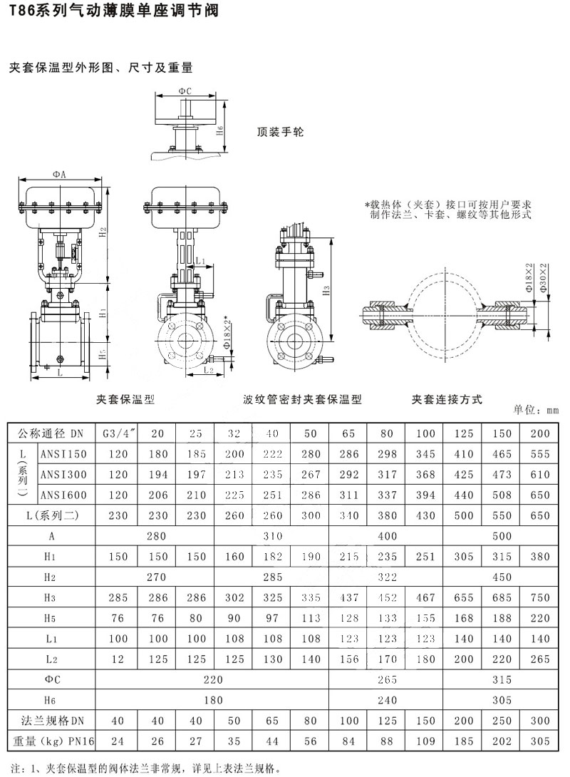 T86-16C,T86-16B,T86-25C,T86-40B,T86-63C,T86-100B,氣動(dòng)薄膜單座調(diào)節(jié)閥