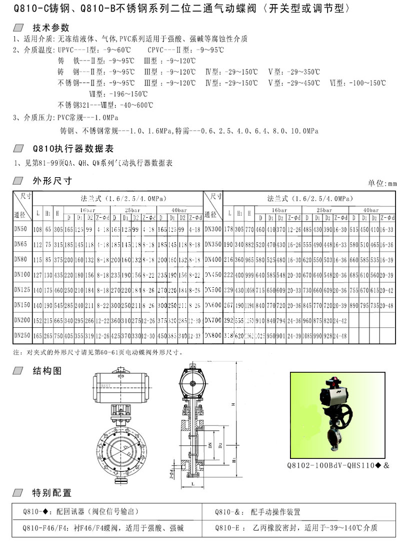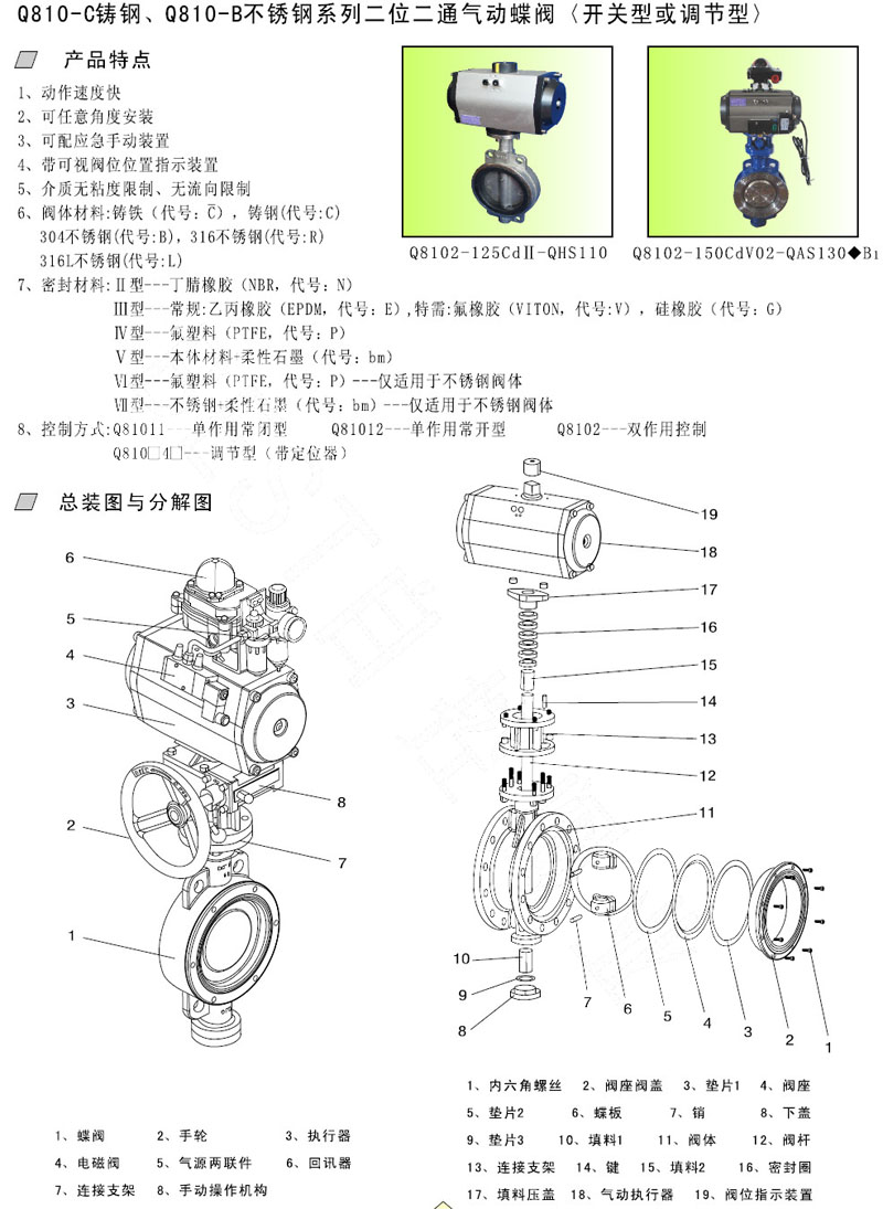 Q81011-50,Q81011-65,Q81012-80,Q81012-100,Q8102-150,Q8102-200,不銹鋼氣動蝶閥 |