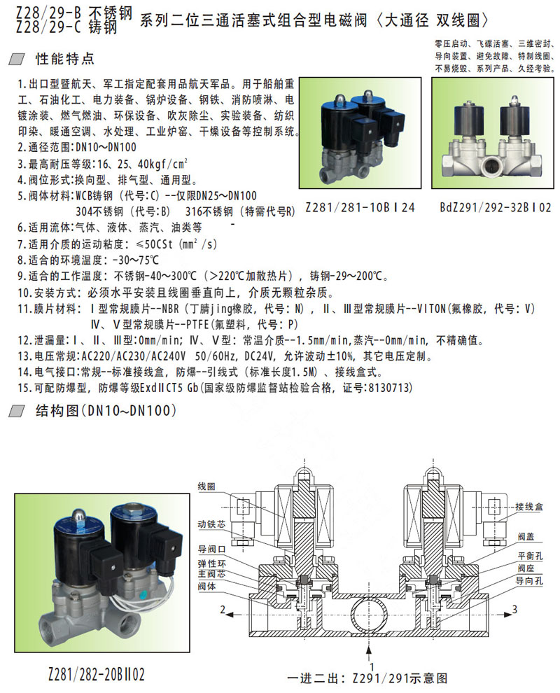 Z281/281-B,Z282/282-B,Z291/291-B,Z281/292-B,Z292/292-B,二位三通電磁閥