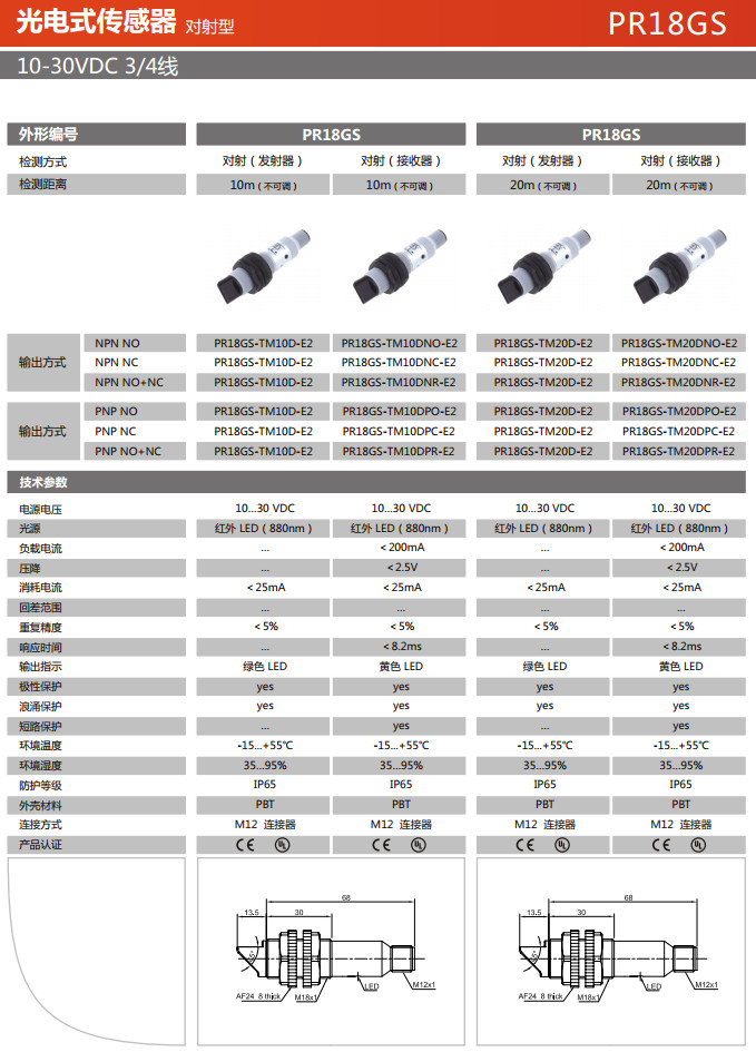 PR18GS-TM10D-E2,PR18GS-TM20D-E2,PR18GS-TM10DNO-E2,PR18GS-TM10DNC-E2,PR18GS-TM10DNR-E2,PR18GS-TM10DPO-E2,光電式傳感器