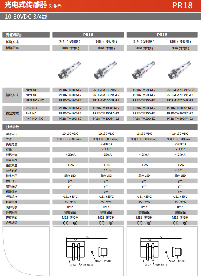 PR18-TM10D-E2,PR18-TM10DNO-E2,PR18-TM10DNC-E2,PR18-TM10DNR-E2,PR18-TM10DPO-E2,PR18-TM10DPC-E2,光電式傳感器