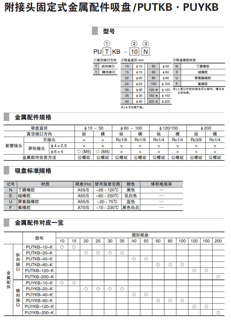 PUTKB-10,PUTKB-20,PUTKB-30,PUYKB-50,PUYKB-60,PUYKB-80,吸盤(pán)