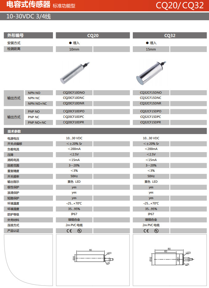 CQ20CF10DNO,CQ20CF10DNC,CQ20CF10DNR,CQ32CF15DNO,CQ32CF15DNC,CQ32CF15DNR,電容式傳感器