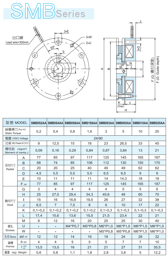 SMB0S2AA,SMB0S4AA,SMB0S8AA,SMB1S6AA,SMB003AA,SMB005AA,SMB010AA,SMB020AA,電磁式安全剎車器 |