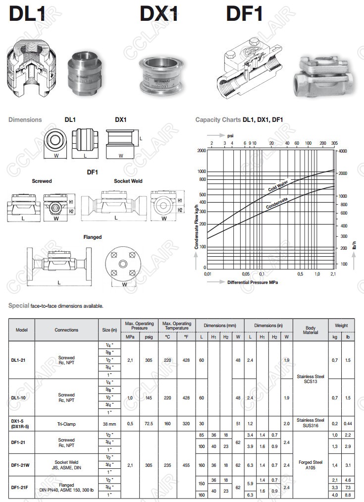 DL1-21,DL1-10,DX1-5,DX1R-5,DF1-21,DF1-21W,DF1-21F,miyawaki熱靜力平衡式蒸汽疏水閥 |