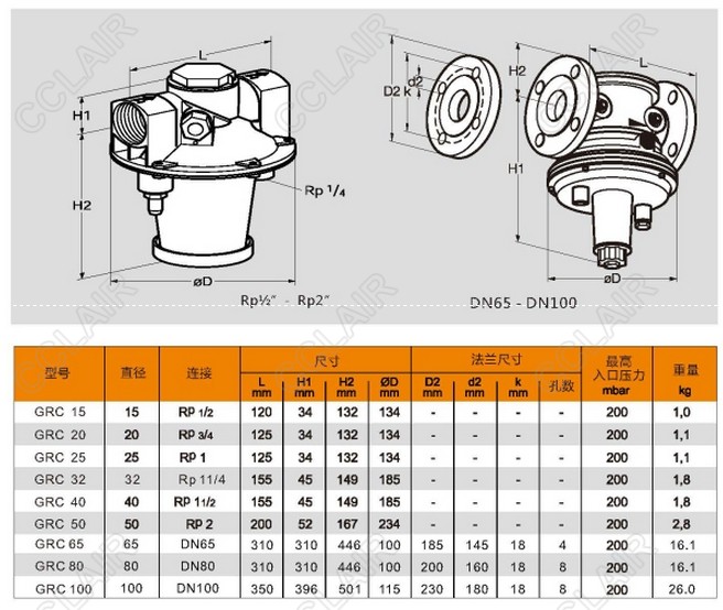 GRC15,GRC20,GRC25,GRC32,GRC40,GRC50,GRC65,GRC80,GRC100,空/燃比例閥