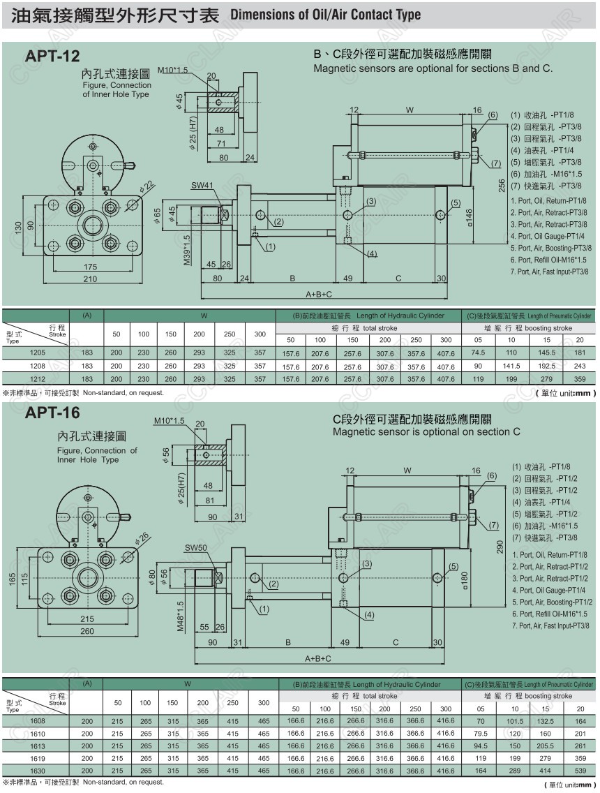 APT-P1205M250N10-3R,APT-P1208M250N10-3R,APT-P1212M250N10-3R,APT-P1608M250N10-3R,APT-P1610M250N10-3R,增壓缸