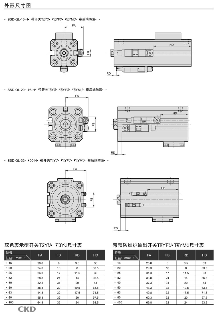 SSD-Q-16,SSD-Q-20,SSD-Q-25,SSD-Q-32,SSD-Q-40,SSD-Q-50,SSD-Q-63,SSD-Q-80,SSD-Q-100,CKD超緊湊型氣缸