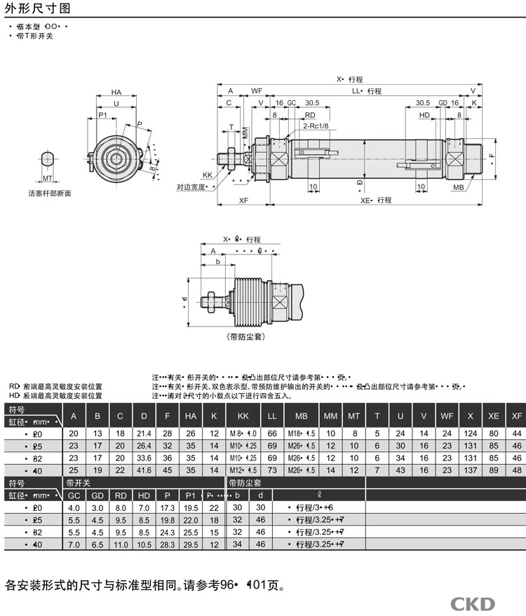CMK2-M-TA-40-250,CMK2-M-TA-40-300,CMK2-M-TB-40-25,CMK2-M-TB-40-50,CMK2-M-TB-40-75,CMK2-M-TB-40-100,CKD緊固型氣缸