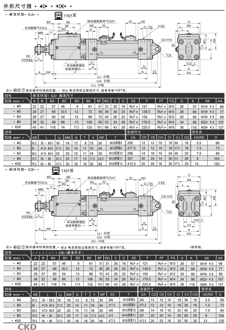 JSC3-H-00-40B,JSC3-SH-00-40B,JSC3-L2H-00-40B,JSC3-SL2H-00-40B,CKD制動氣缸