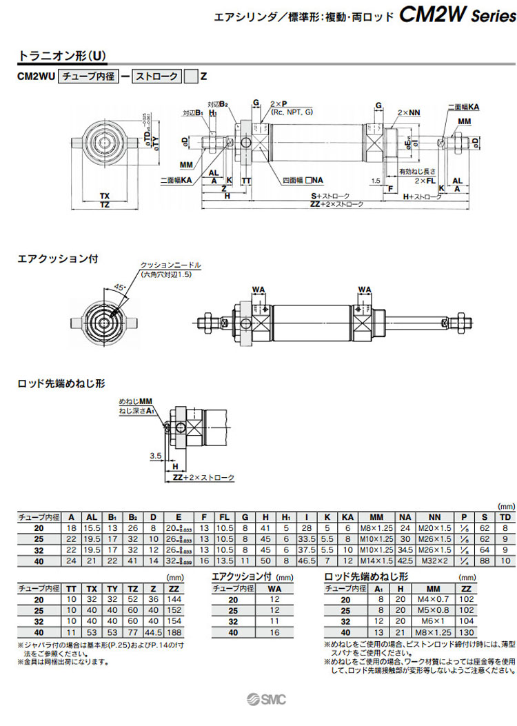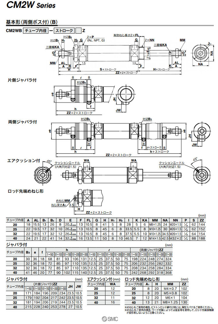 CM2WB,CM2WL,CM2WF,CM2WU,CM2WHB,CM2WHL,CM2WHF,CM2WHU,CM2WHL40-25,SMC標(biāo)準(zhǔn)型氣缸