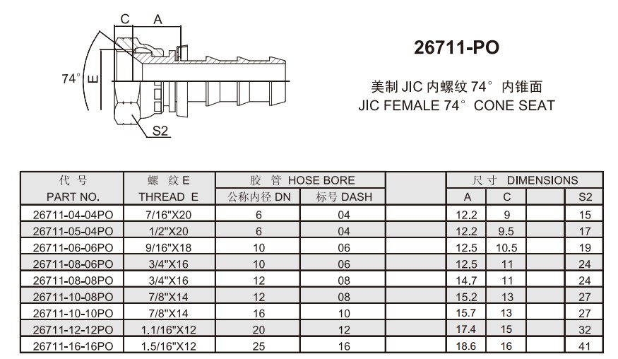 26711-04-04PO,26711-05-04PO,26711-06-04PO,26711-08-06PO,26711-10-08PO,26711-12-12PO,插入式軟管接頭