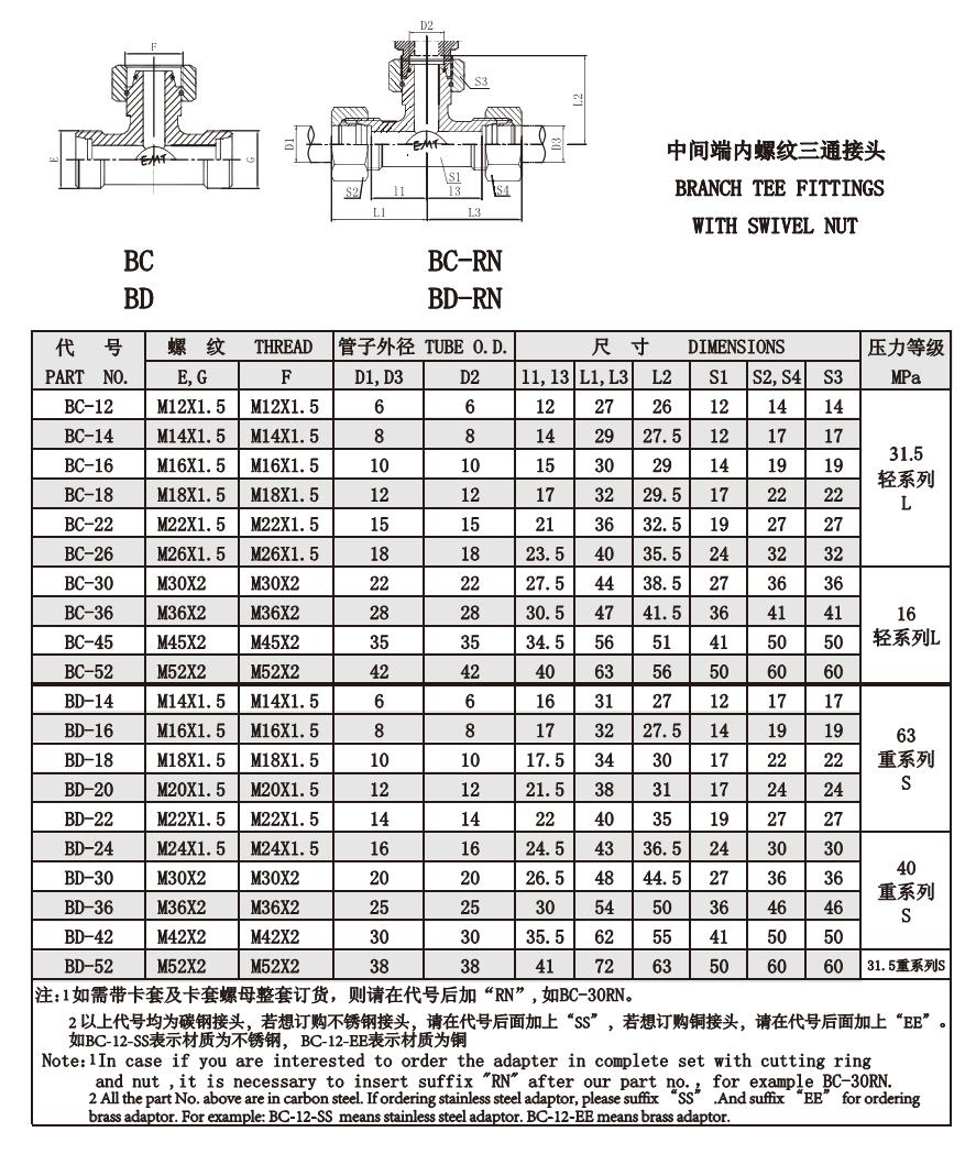 BC-12,BC-26,BC-30,BC-45,BC-52,BD-18,BD-20,BD-36,BD-42,BD-52,內螺紋三通接頭