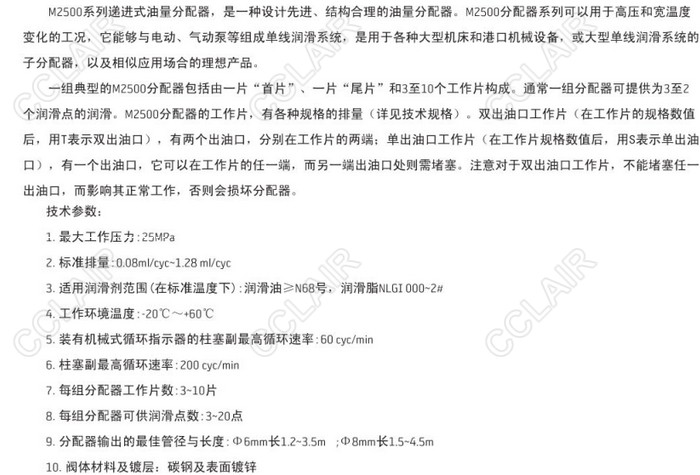 M2500,遞進(jìn)式分配器