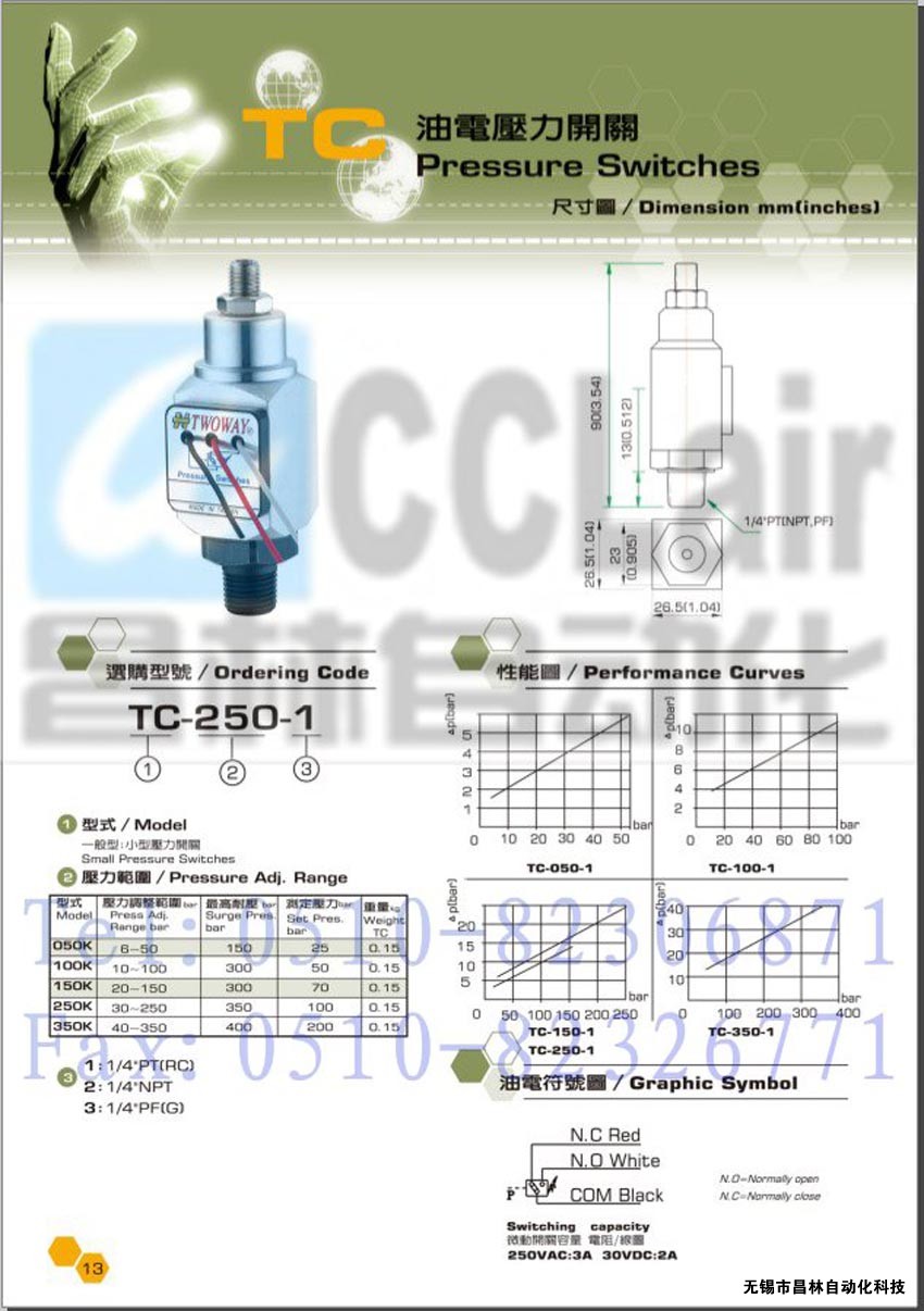 TC-250-2,TC-250-3,TC-350-1,TC-350-2,TC-350-3,油電壓力開關(guān),臺(tái)肯