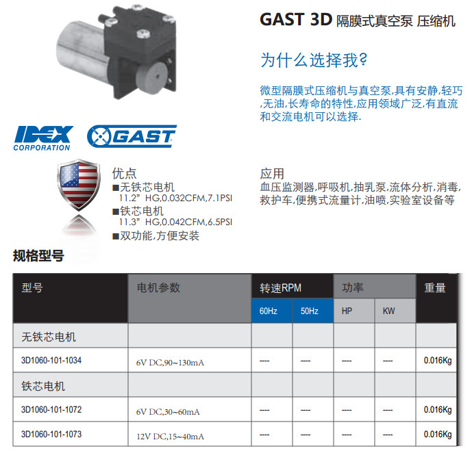 3D1060-101-1034,3D1060-101-1072,3D1060-101-1073,隔膜式真空泵/壓縮機(jī)