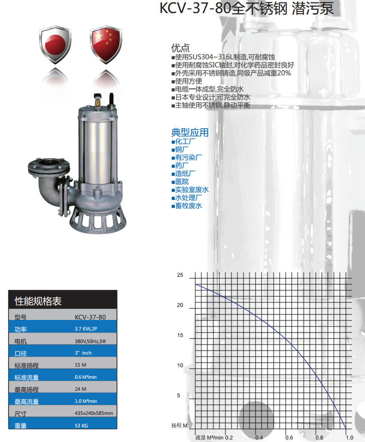 KCV-37-80,全不銹鋼潛污泵