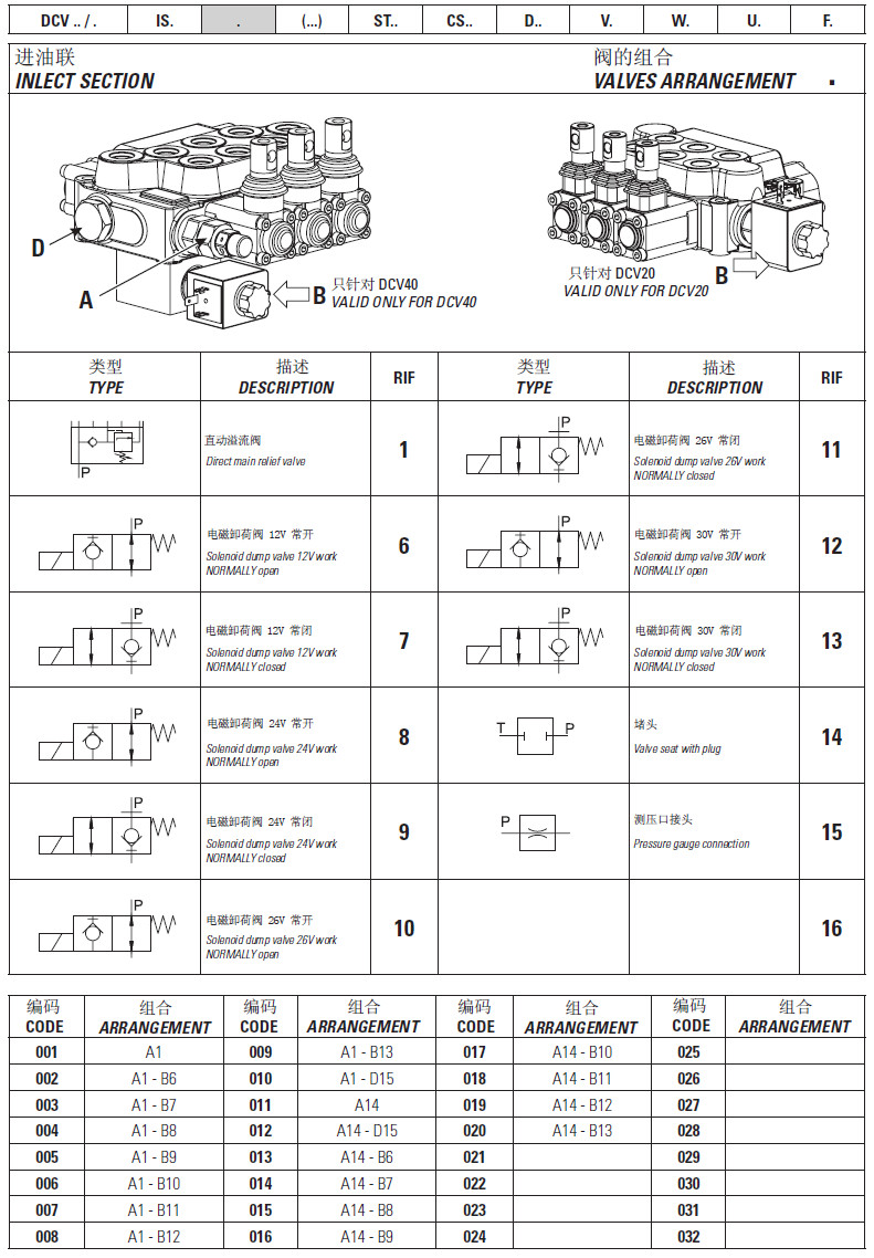 DCV20/1,DCV20/2,DCV20/3,DCV20/4,DCV20/5,DCV20/6,DCV40/1,DCV40/2,DCV40/3,多路換向閥