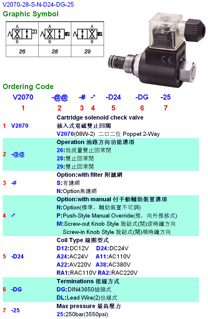 V2070-26-S,V2070-28-S,V2070-29-S,V2070-28-S-N-D24-DG-25,HYDROMAX插入式電磁止回閥