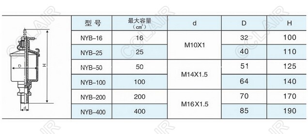 NYB-16,NYB-25,NYB-50,NYB-100,NYB-200,NYB-400,針閥式注油杯