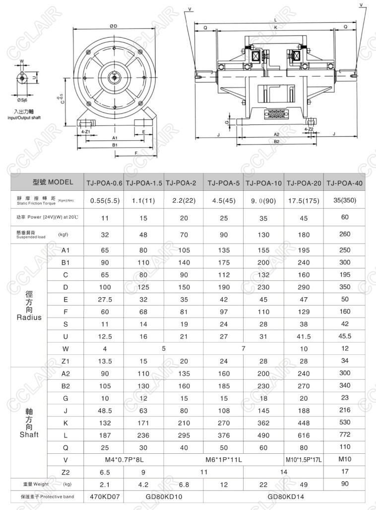 TJ-POA-0.6,TJ-POA-1.5,TJ-POA-2.5,TJ-POA-5,TJ-POA-10,TJ-POA,內(nèi)藏式電磁離合、剎車器組合 |