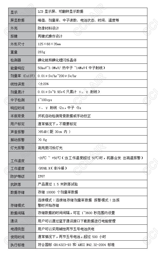 • 緊湊設(shè)計(jì)、測(cè)量多種射線:在2 秒內(nèi)對(duì)χ、γ 射線快速報(bào)警,5 秒內(nèi)對(duì)中子射線報(bào)警