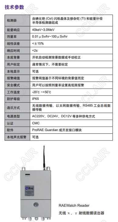 RAEWatch 是一款高靈敏度、快速響應(yīng)型χ、γ 射線檢測器,能在2 秒內(nèi)對現(xiàn)場劑量率變化發(fā)出報(bào)警。應(yīng)用的主要領(lǐng)域是區(qū)域輻射場監(jiān)測和工業(yè)在線固定式應(yīng)用放射源的劑量監(jiān)測。