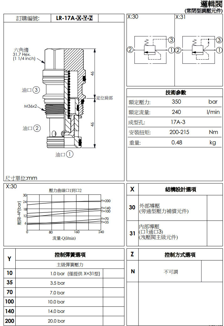 LR-17A-30-10-N,LR-17A-30-35-N,LR-17A-31-70-N,LR-17A-31-100-N,winner邏輯閥