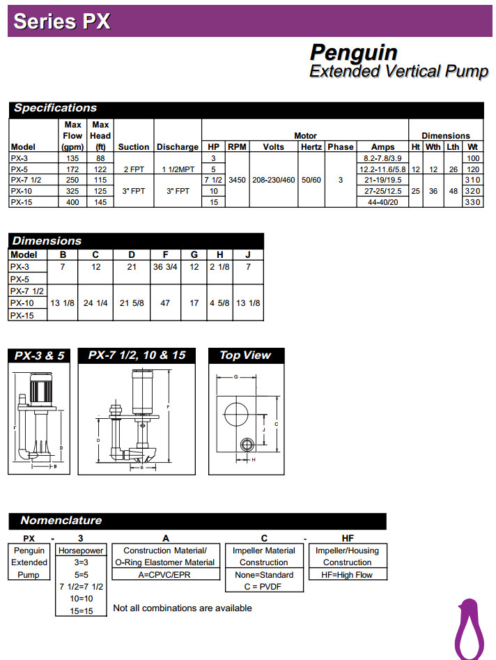 PX-3,PX-5,PX-7 1/2-HF,PX-10-HF,PX-15-HF,PENGUIN擴展立式泵