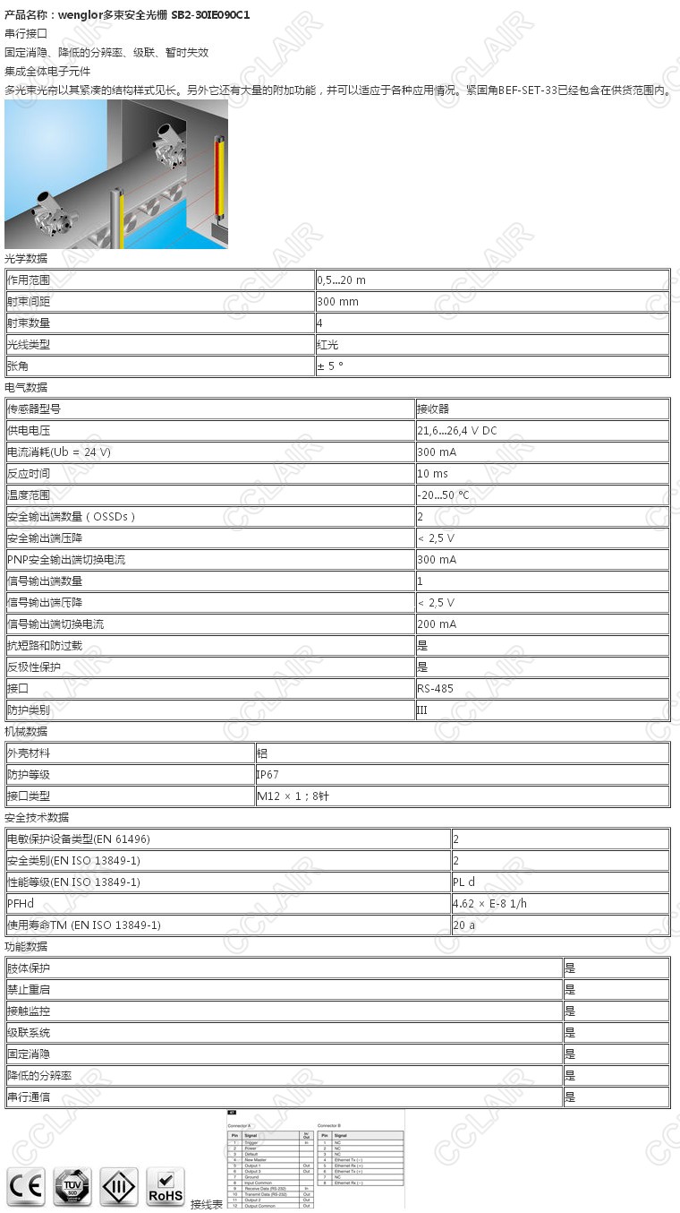 SB2-30IE090C1,wenglor多束安全光柵