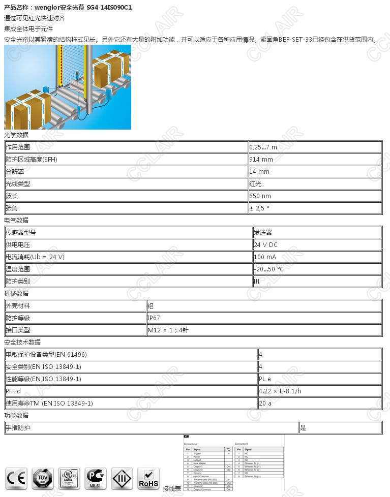 SG4-14IS090C1,wenglor安全光幕