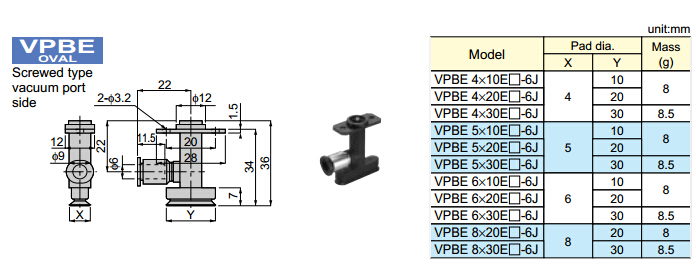 VPBE4×10EN-6J,VPBE5×10EN-6J,VPBE8×20EN-6J,VPBE4×10ES-6J,VPBE6×10EG-6J,VPBE8×20EG-6J,PISCO真空吸盤