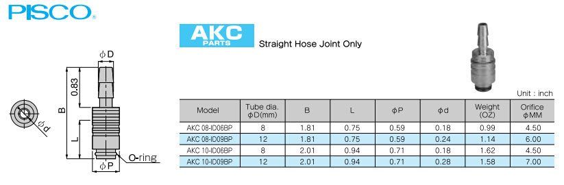 AKC08-ID06BP,AKC08-ID09BP,AKC10-ID06BP,AKC10-ID09BP,PISCO耐熱管接頭