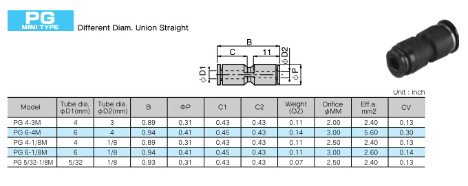 PG4-3M,PG6-4M,PG4-1/8M,PG6-1/8M,PG5/32-1/8M