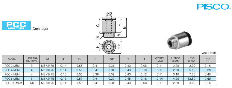PCC3-M6M,PCC4-M6M,PCC4-M8M,PCC6-M8M,PCC1/8-M6M