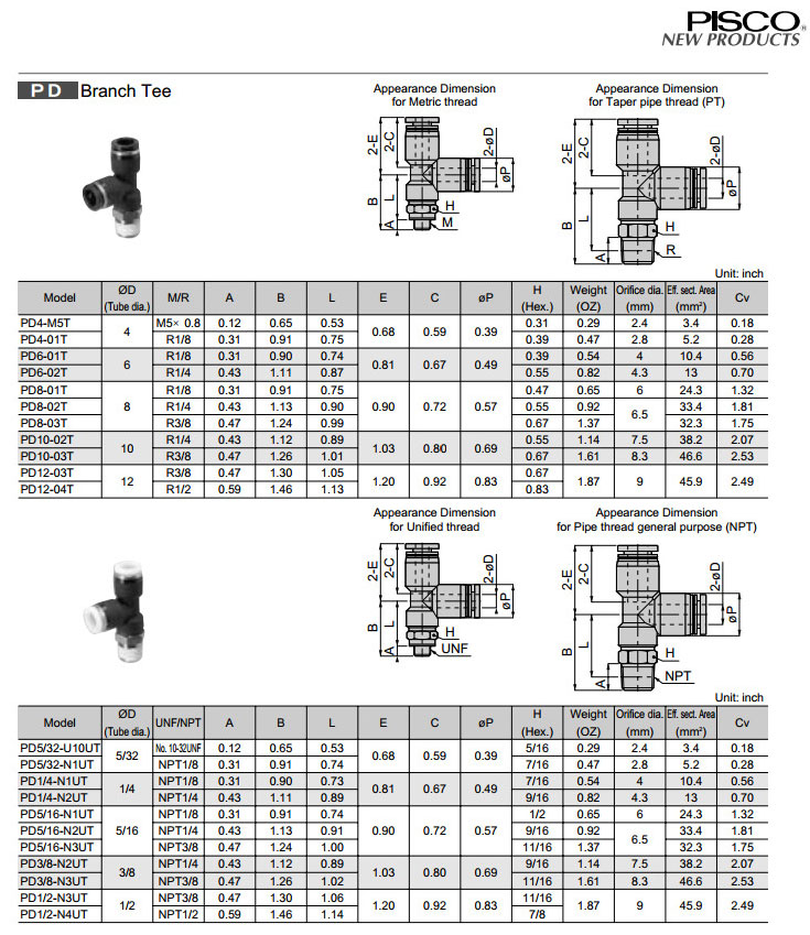PD5/32-U10UT,PD1/4-N1UT,PD5/16-N1UT,PD3/8-N2UT,PD1/2-N3UT,PD5/32-N1UT,PISCO快速接頭