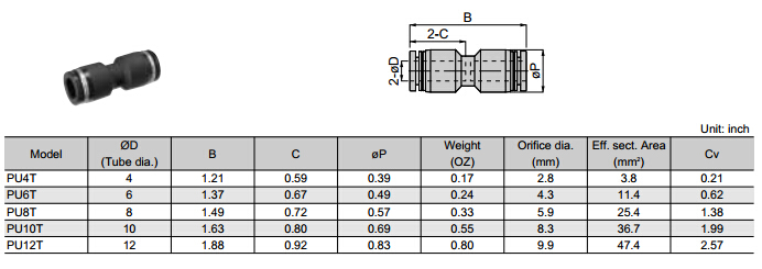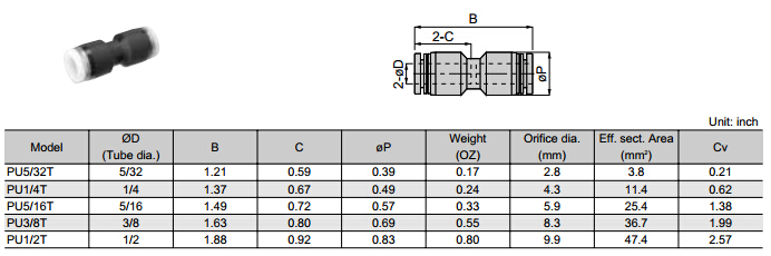PU4T,PU6T,PU8T,PU10T,PU12T,PU5/32T,PU1/4T,PU5/16T,PU3/8T,PU1/2T