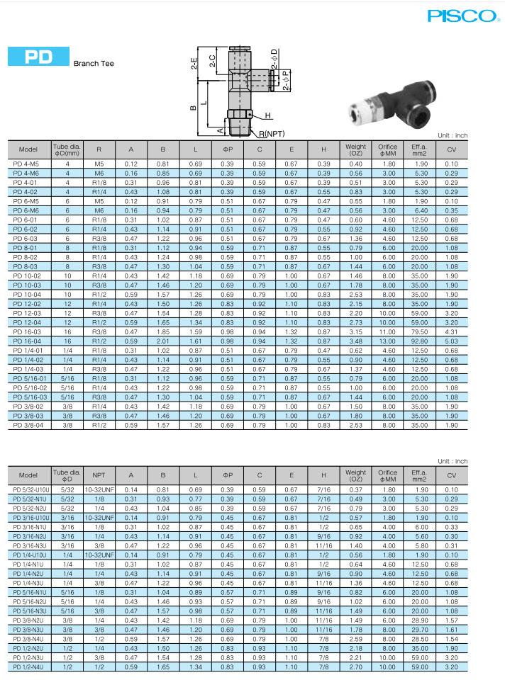 PD5/32-U10U,PD3/16-U10U,PD1/4-U10U,PD5/16-N1U,PD3/8-N2U,PD1/2-N2U,PISCO快速接頭