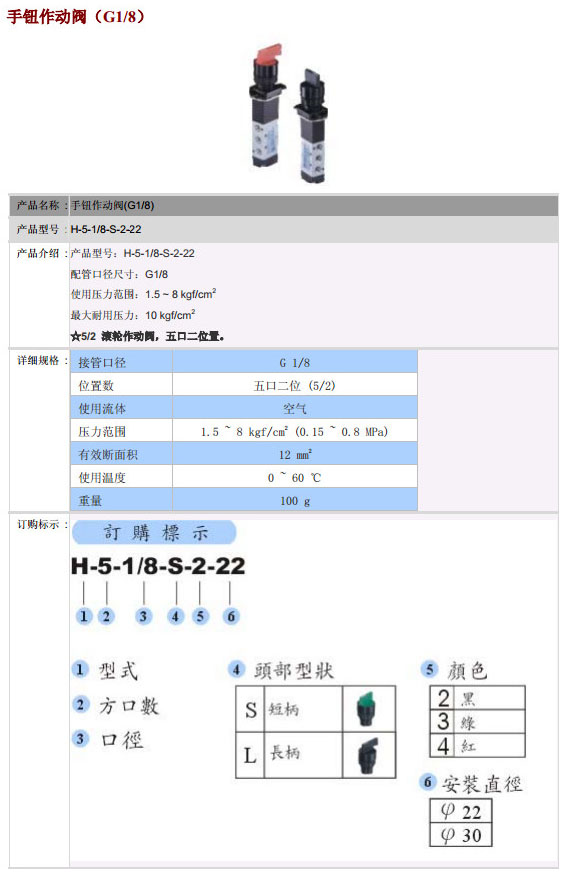 H-5-1/8-S-2-22,POSU手鈕作動(dòng)閥
