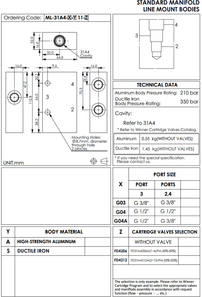 ML-31A4-G03-A11-FD4206,ML-31A4-G04-A11-FD4206,ML-31A4-G04A-A11-FD4206,winner標(biāo)準(zhǔn)配管式油路板
