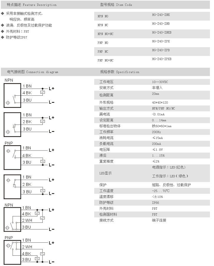 組合型接近傳感器 HG-Z40-ZNK,HG-Z40-ZNB,HG-Z40-ZNKB,HG-Z40-ZPK,HG-Z40-ZPB,HG-Z40-ZPKB,