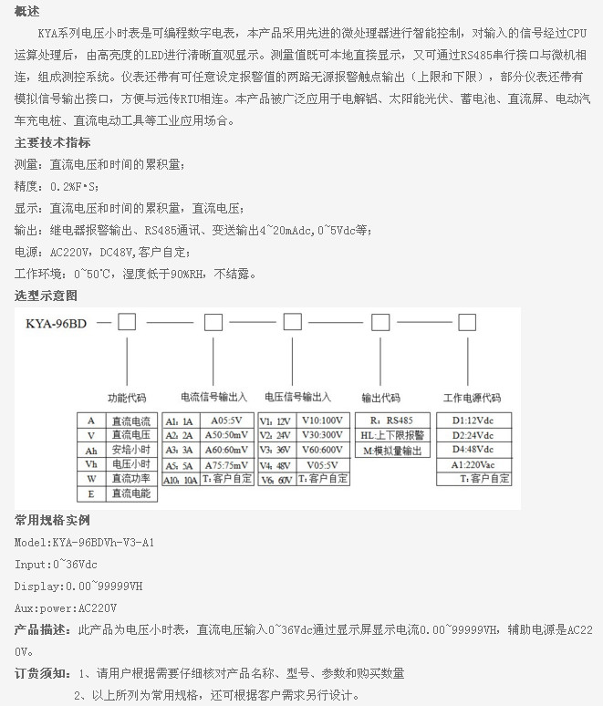 型號: KYA-96BDVh-V1,KYA-96BDVh-V2,KYA-96BDVh-V3,KYA-96BDVh-V3-A1,KYA,電壓小時表