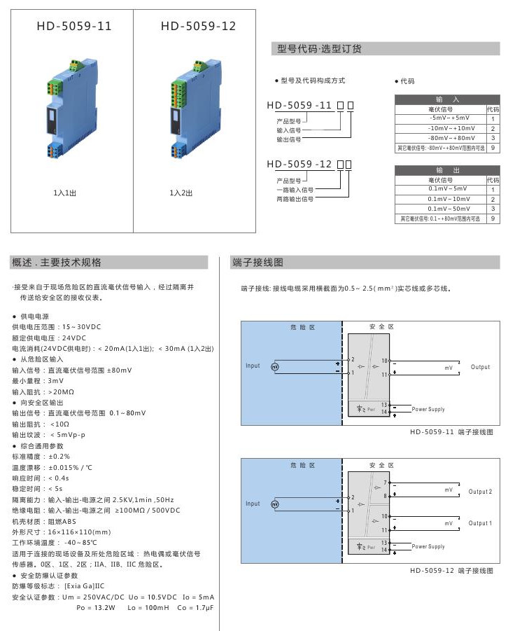HD-5059-11,HD-5059-12,直流毫伏信號(hào)輸入隔離安全柵