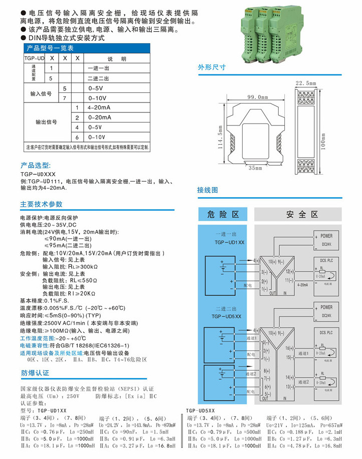 TGP-UD151,TGP-UD152,TGP-UD154,TGP-UD574,TGP-UD576,TGP-UD,電壓信號輸入隔離安全柵