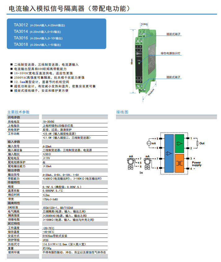 TA3012,TA3014,TA3016,TA3018,電流輸入模擬信號(hào)隔離器