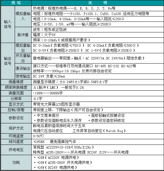 本表所列為最大量程,用戶可在量程范圍內通過修改儀表二級參數(shù)確定量程范圍