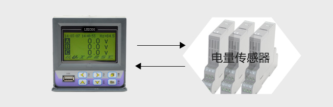 記錄儀與現(xiàn)場儀表的配合使用:配電量變送器,實(shí)現(xiàn)測量和記錄現(xiàn)場的電量信號(hào)。