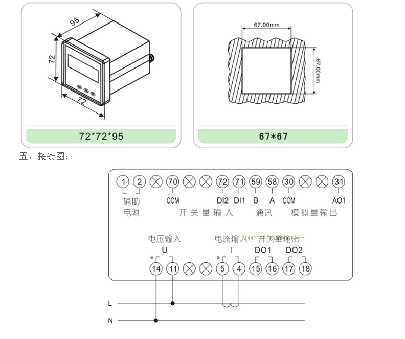 擴展:AC5A以上需配電流互感器,AC500V以上需配電壓互感器,現(xiàn)場可編程設置輸入?yún)?shù)變比。