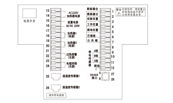 該產品功能強大,有帶電顯示,溫濕度數(shù)字顯示,三相觸頭溫度值顯示,自動加熱除濕控制,斷路器分合閘狀態(tài)指示,儲能、接地開關指示,手車位置指示,一次回路模擬圖,二次回路電壓數(shù)值顯示,人體感應柜內照明,智能語音防誤提示,語音帶電提示,分合閘回路指示,電壓、電流、有功功率、無功功率、功率因數(shù)、頻率測量以及RS485通訊接口等功能。