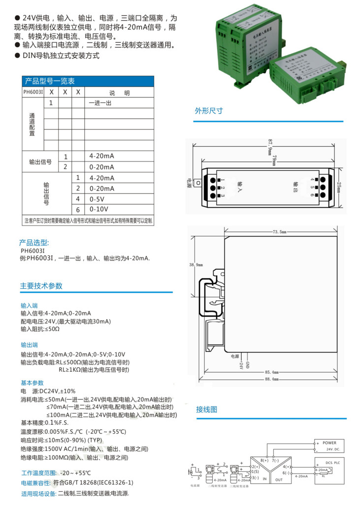 PH6003I111,PH6003I112,PH6003I114,PH6003I124,PH6003I126,PH6003I,電流輸入配電隔離器(有源型)